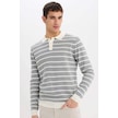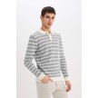 DeFacto Standart Fit Polo Yaka Çizgili Triko Kazak E7604AX24WNGR253