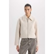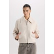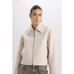DeFacto Su İtici Regular Kalıp Polo Yaka Fermuarlı Cepli Kısa Kaşe Ceket C0935AX25SPER238 Ekru