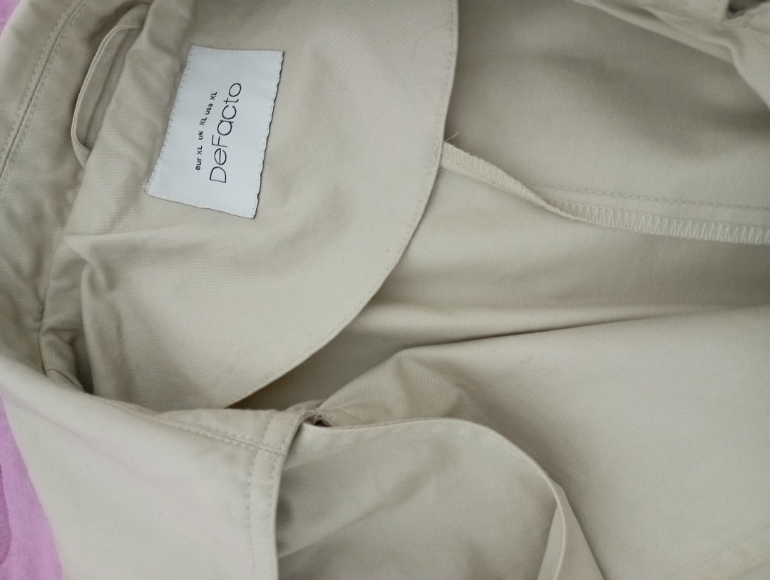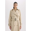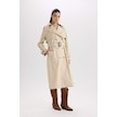 DeFacto Uzun Trençkot Kruvaze Yaka Düğmeli Cepli Kemerli Apoletli D5755AX25SPER238 Ekru
