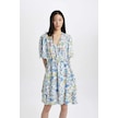 Defacto Wrap Yaka Desenli Maroken Yarım Kollu Mini Elbise C7223AX24SMPR40