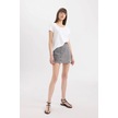 Defacto Yüksek Bel Mini Jean Şort Etek C0695AX24SMNM55 Gri
