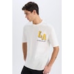 DeFactoFit NBA Los Angeles Lakers Oversize Geniş Kalıp Bisiklet Yaka Sırt Baskılı Kısa Kollu Tişört B3894AX25SPER105