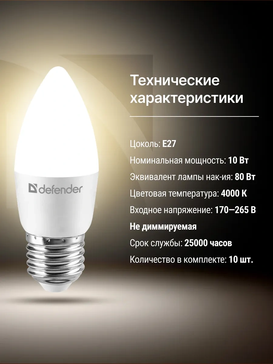 Defender Ampul Mumu, Nötr Beyaz, 10 Adet C37-10w-840-e27 273159452