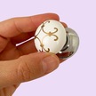 Defne Altın Çizgili Beyaz Polimer Düğme Kulp Krom Tablalı Mobilya Mutfak Dolabı Çekmece Kulbu Kulpları