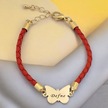 Defne İsmine Özel Kelebek Motifli 14 Ayar Altın Plakalı Turuncu Derili Hediye Bileklik-502isim Defne