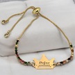 Defne İsmine Özel Taç Motifli 14 Ayar Altın Plakalı Renkli Taş Desenli Hediye Bileklik-489isim Defne
