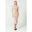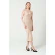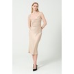 Degaje Döküm Saten Midi Elbise Multi Bej