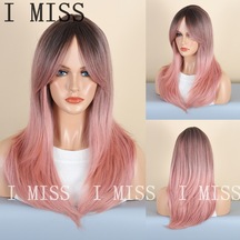 Degrade Pembe Mikro Bukle Moda Kadın Doğal Sentetik Peruk