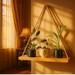 Dekoratif Ahşap Halatlı Duvar Rafı Kitaplık & Çiçeklik Uçan Raf 35cm Genişlik X 13cm Derinlik Krem