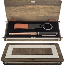Dekoratif Ahşap Kutulu Bakır Kalem Anahtarlık Set - 90923712619521000f