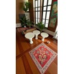 Dekoratif Ahşap Mantar Yan Sehpa Takımı 3 Lü Krem Renk Set