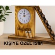 Dekoratif Ahşap Saat Merdivenli Ve Balkonlu Masa Tasarımı Ahşap Rengi