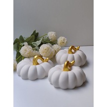 Dekoratif Balkabağı 3'lü Set, Beyaz Altın Saplı El Yapımı, Ev Dekoru, Obje