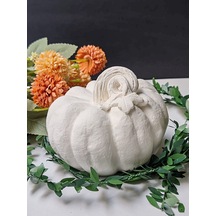 Dekoratif Balkabağı Orta Boy, Ham Beyaz El Yapımı, Ev Dekoru, Masa Dekoru, Obje, Biblo