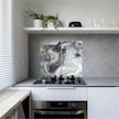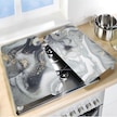 Dekoratif Cam Ocak Koruyucu ve Kesim Tahtası Gri Altın Mermer (60