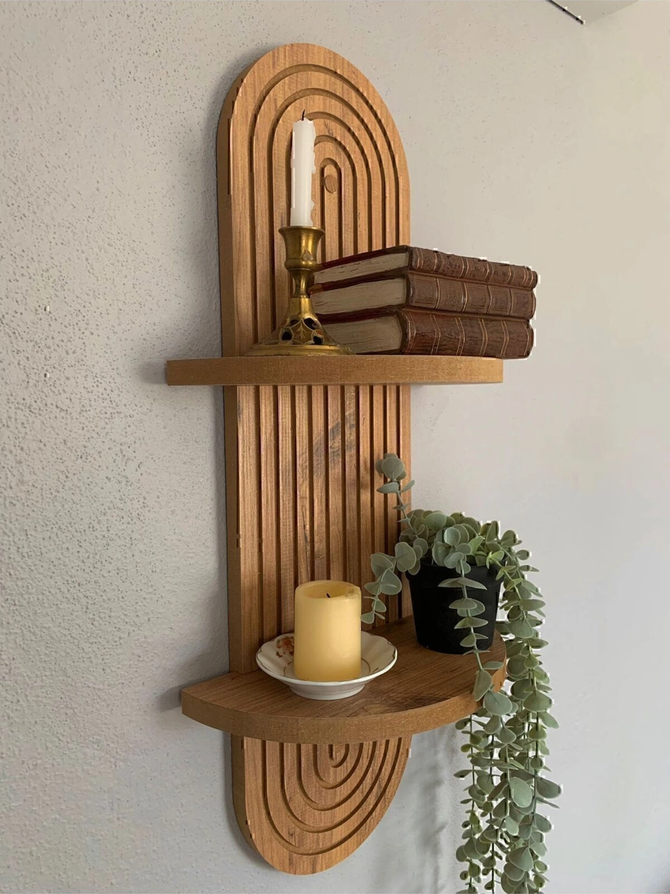 5 Katlı Kitaplık - Ahşap Duvar Rafı, Dekoratif Raf 30x60 Cm-ham Mdf Ham