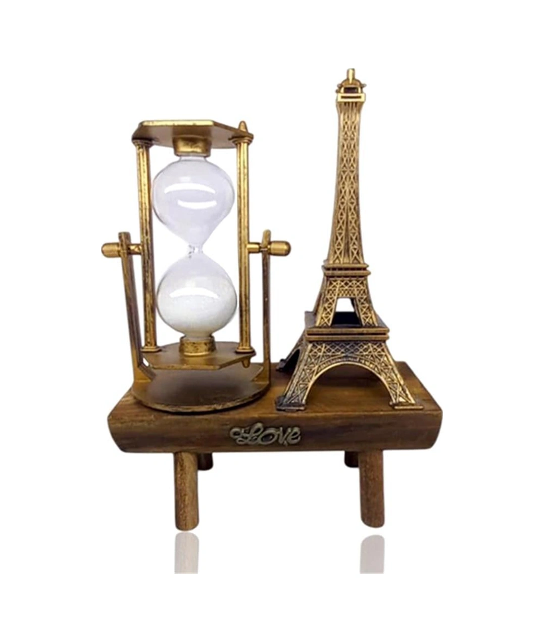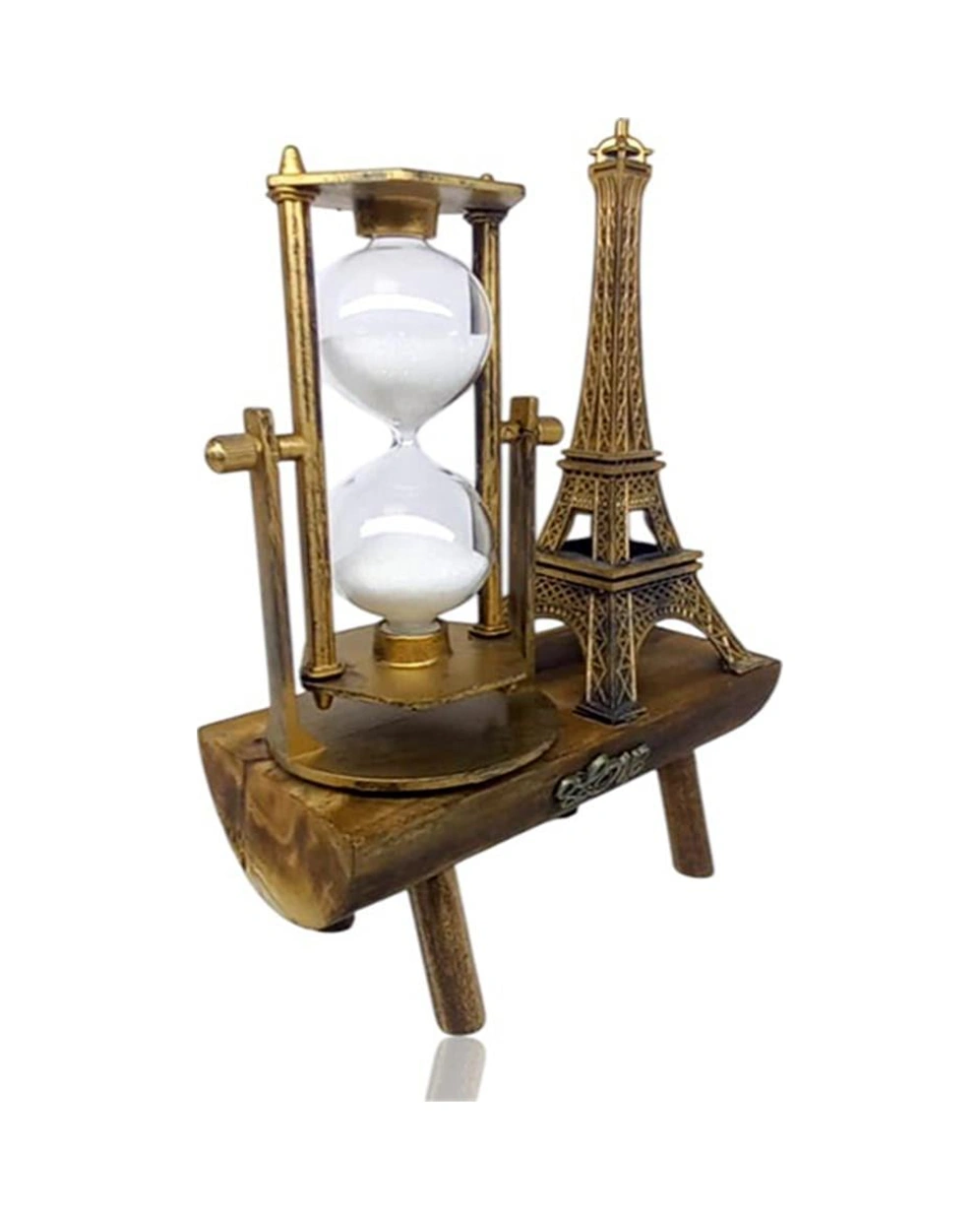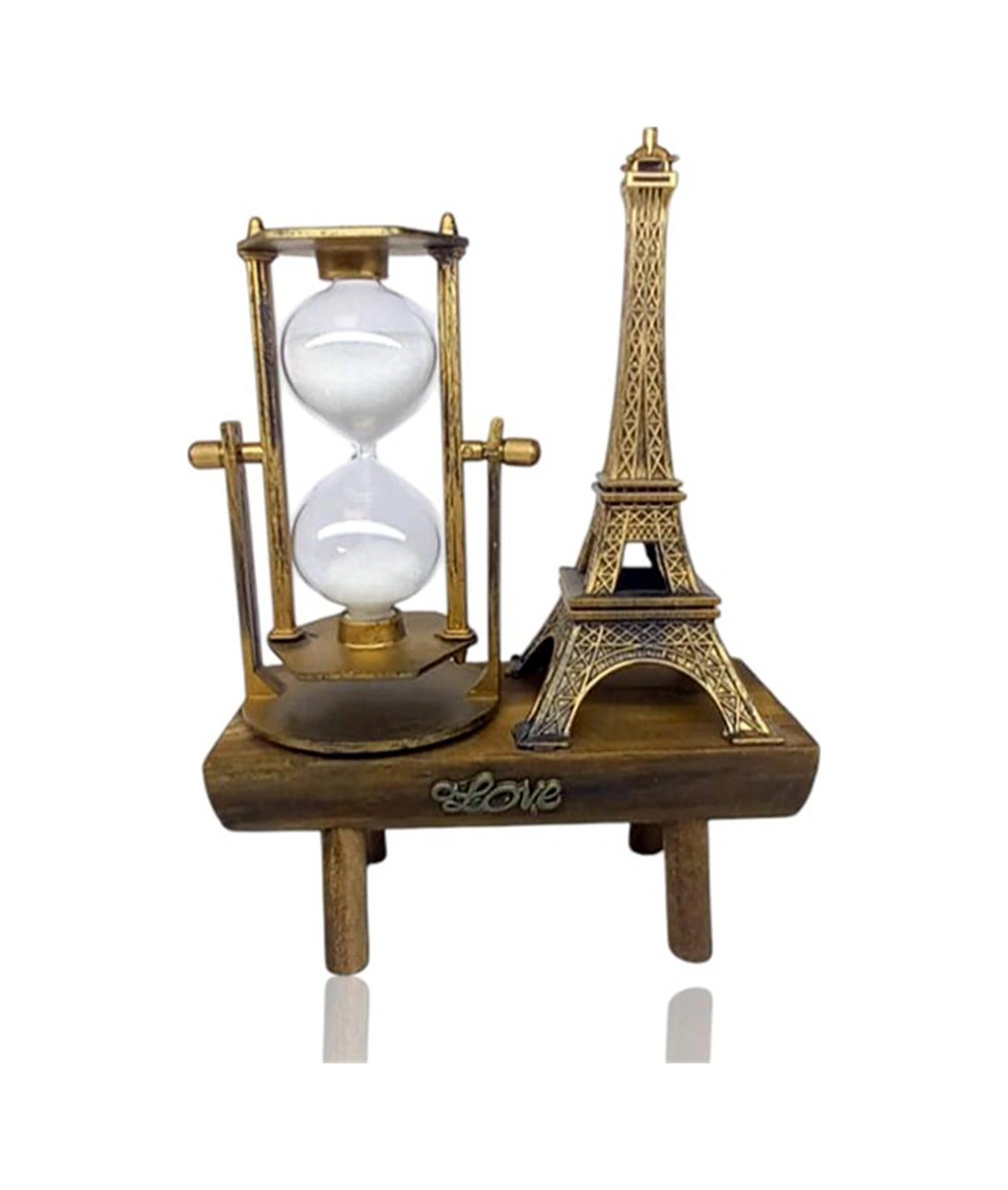 Dekoratif Eyfel Kulesi Tasarımlı Kum Saatli Ahşap Altlıklı Masa Süsü Altın Renk
