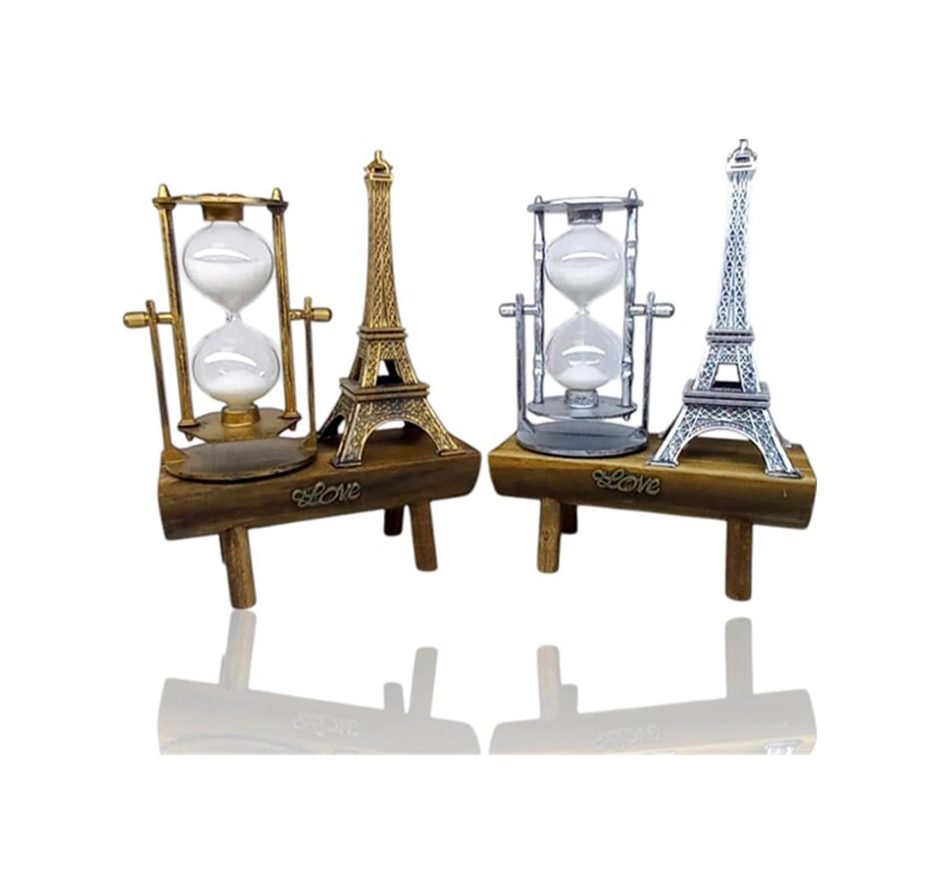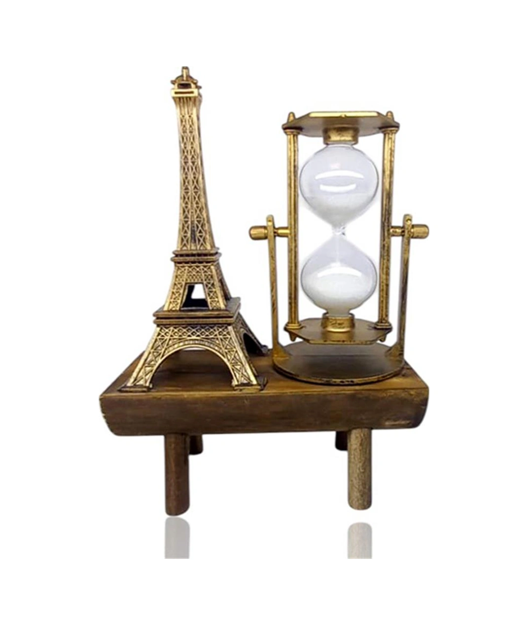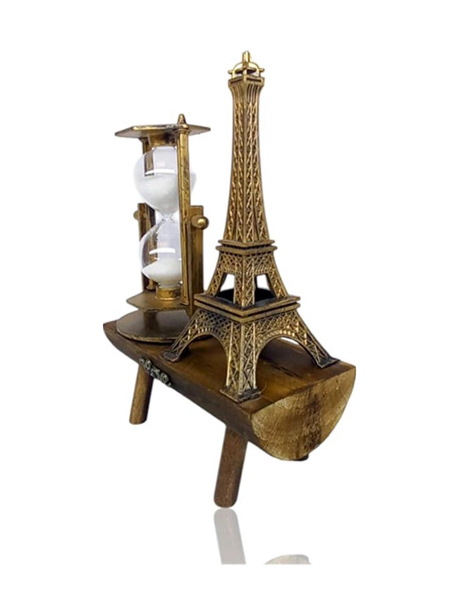 Dekoratif Eyfel Kulesi Tasarımlı Kum Saatli Ahşap Altlıklı Masa Süsü Altın Renk