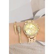 Dekoratif Kadran Taşlı Tasarım Metal Kordon Gold Kadın Kol Saati