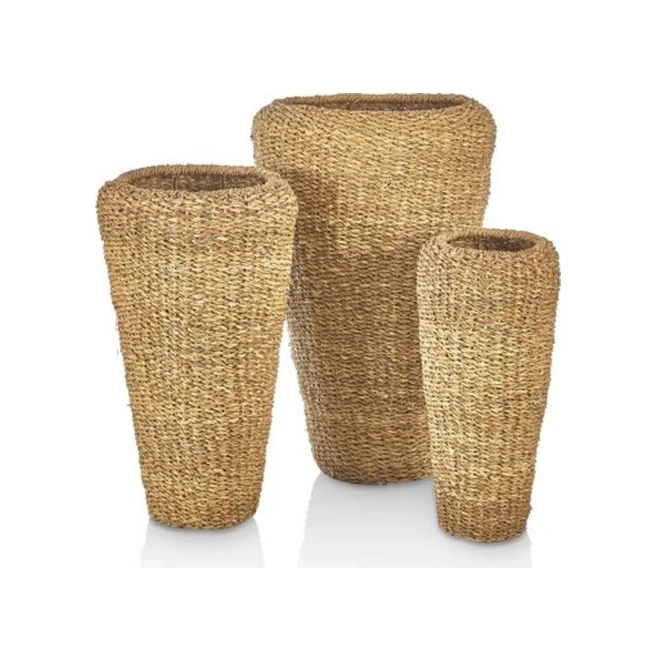 Dekoratif Konik Hasır Saksılık Vazo 3 Lü Set