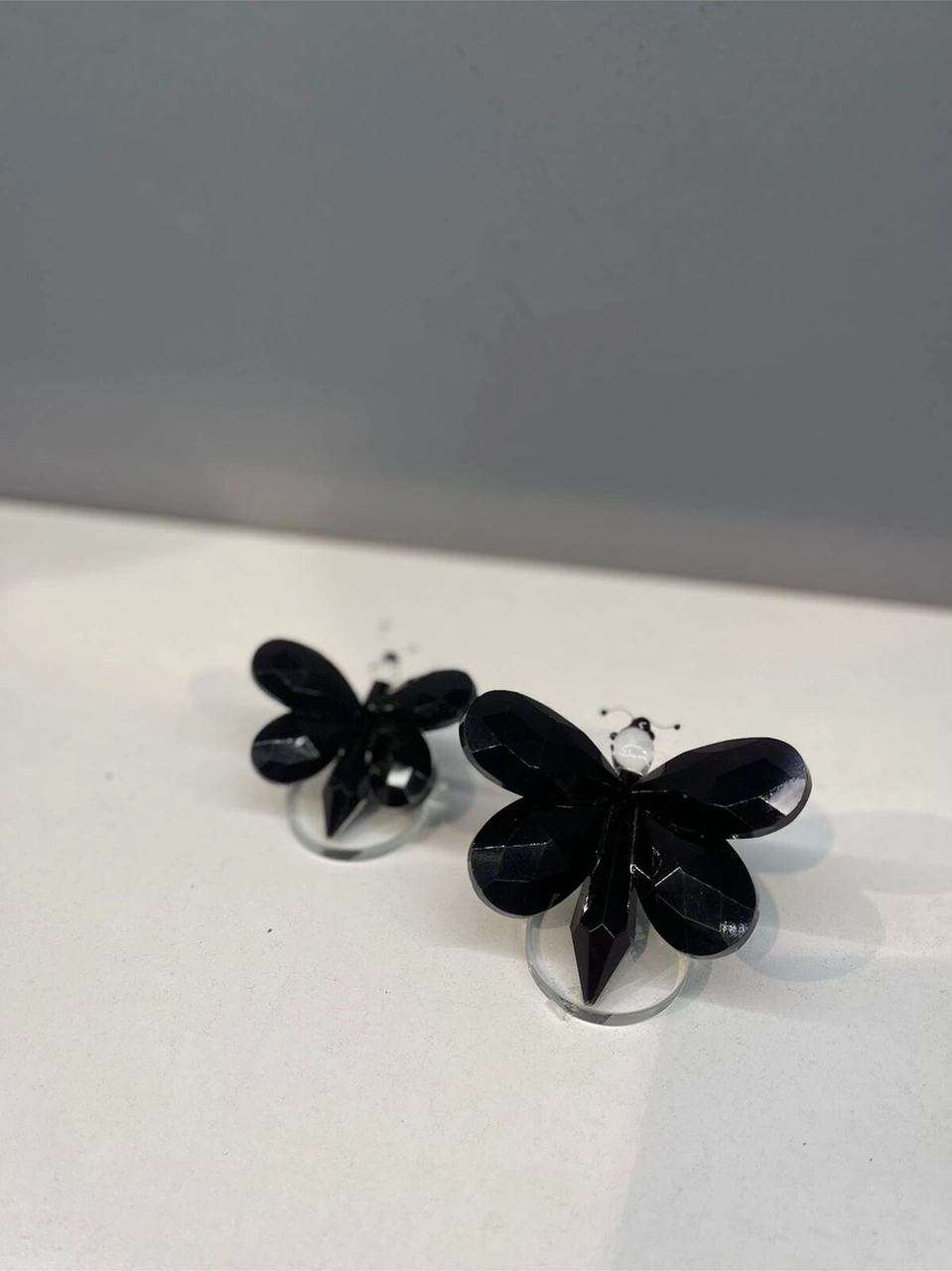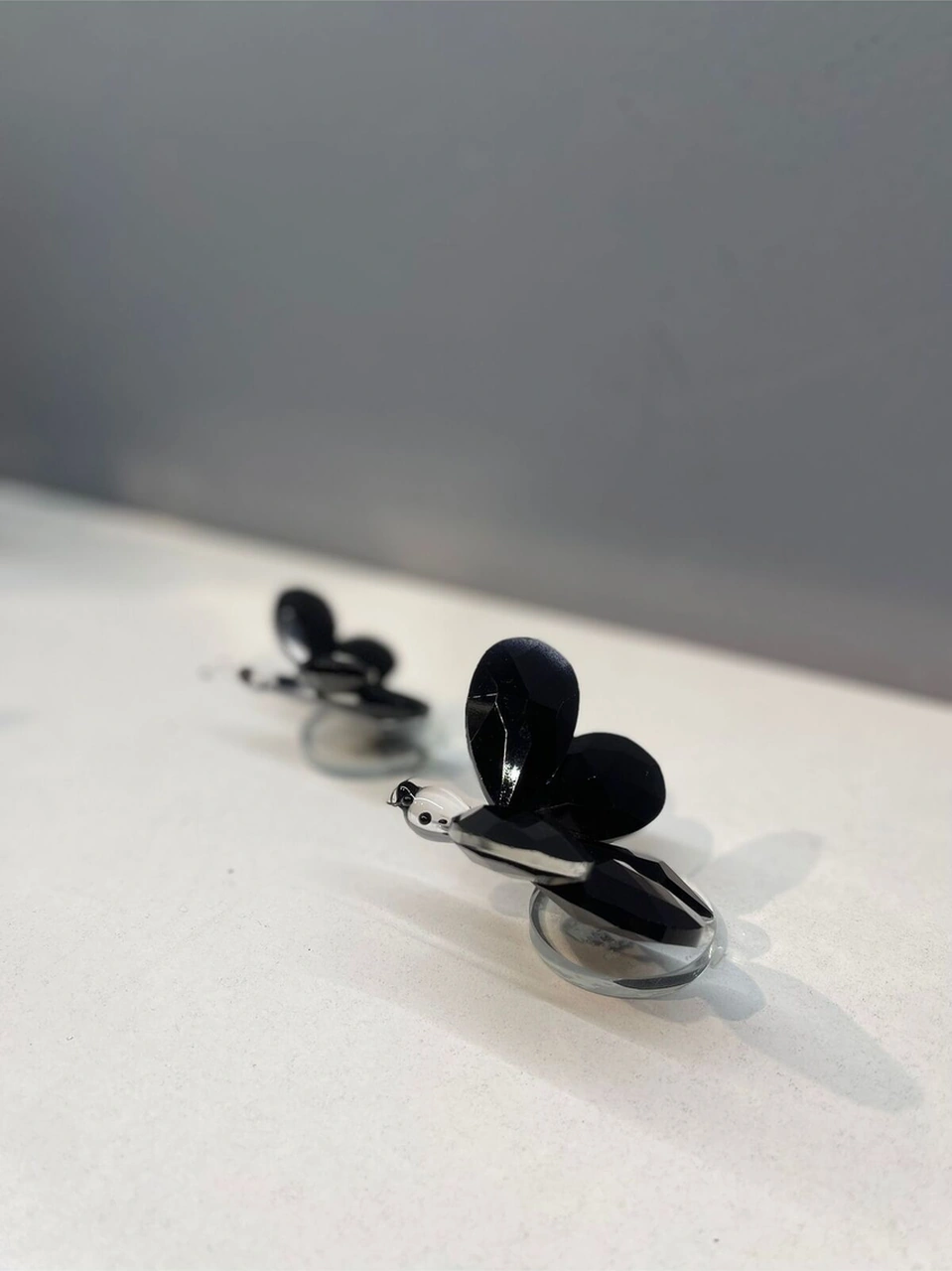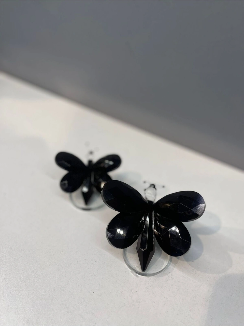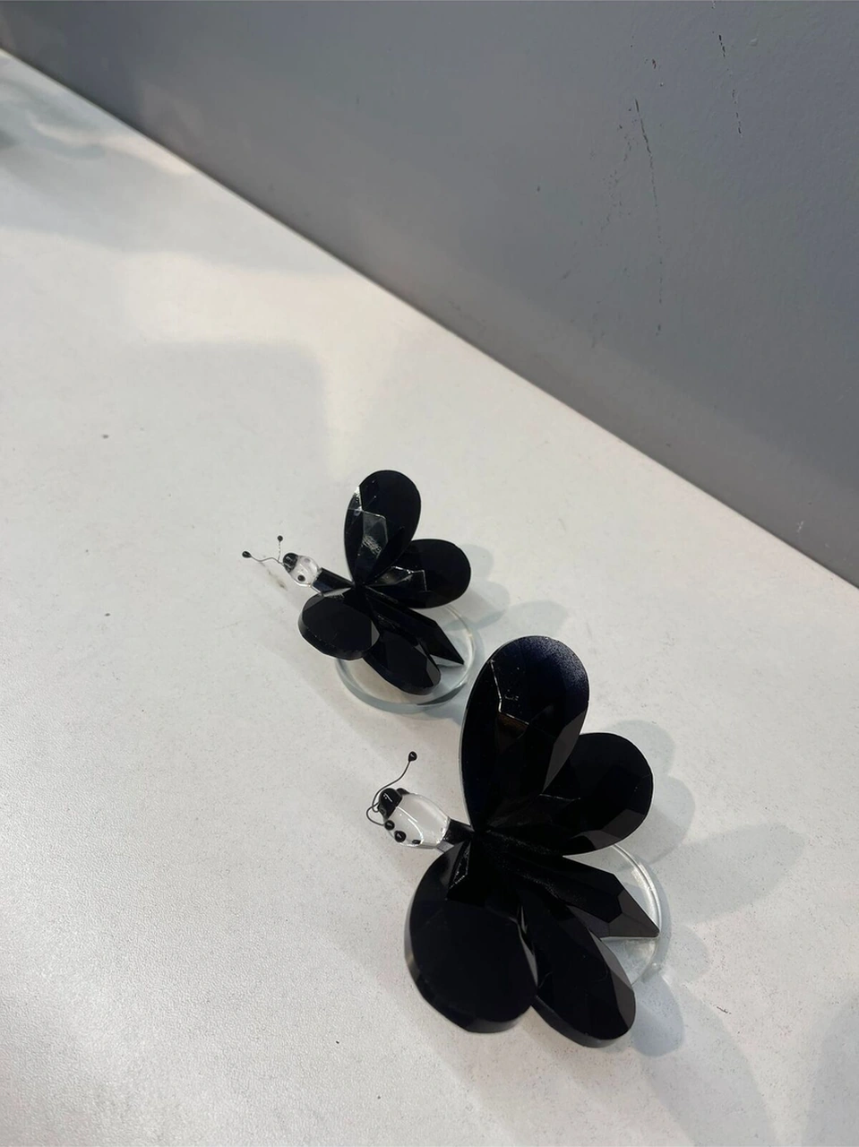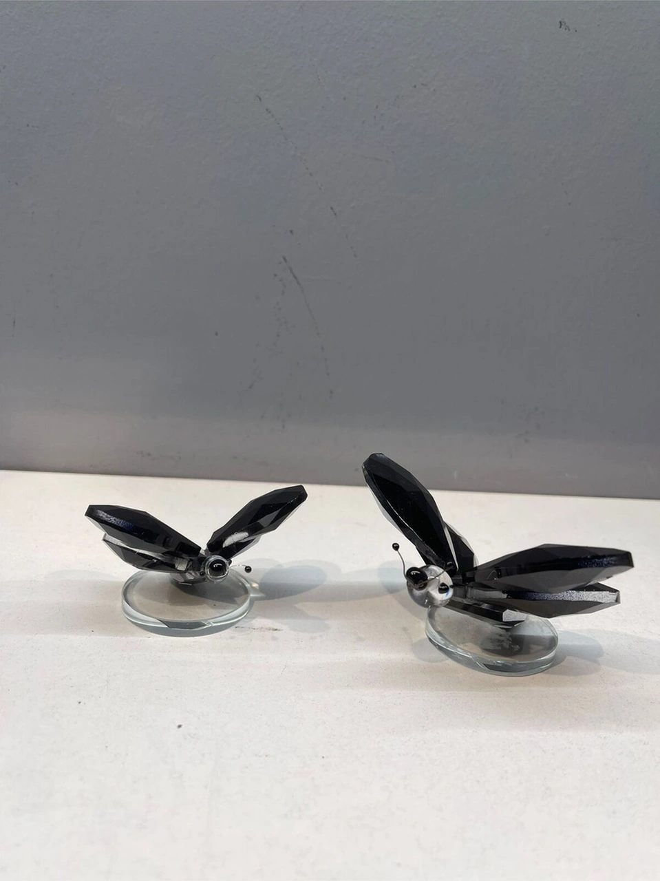 Dekoratif Kristal Cam Ikili Kelebek Biblo Siyah .