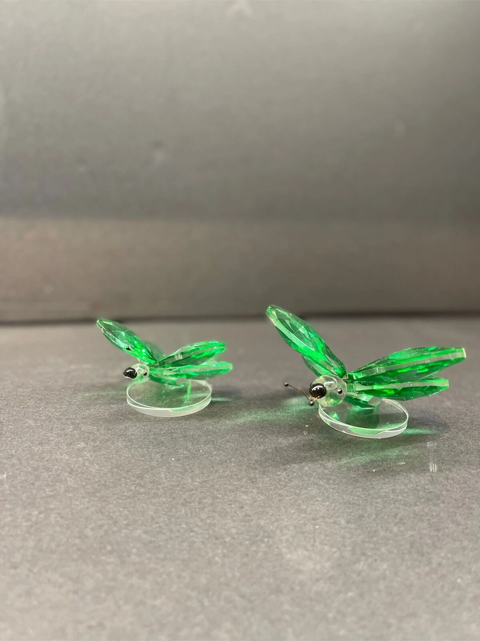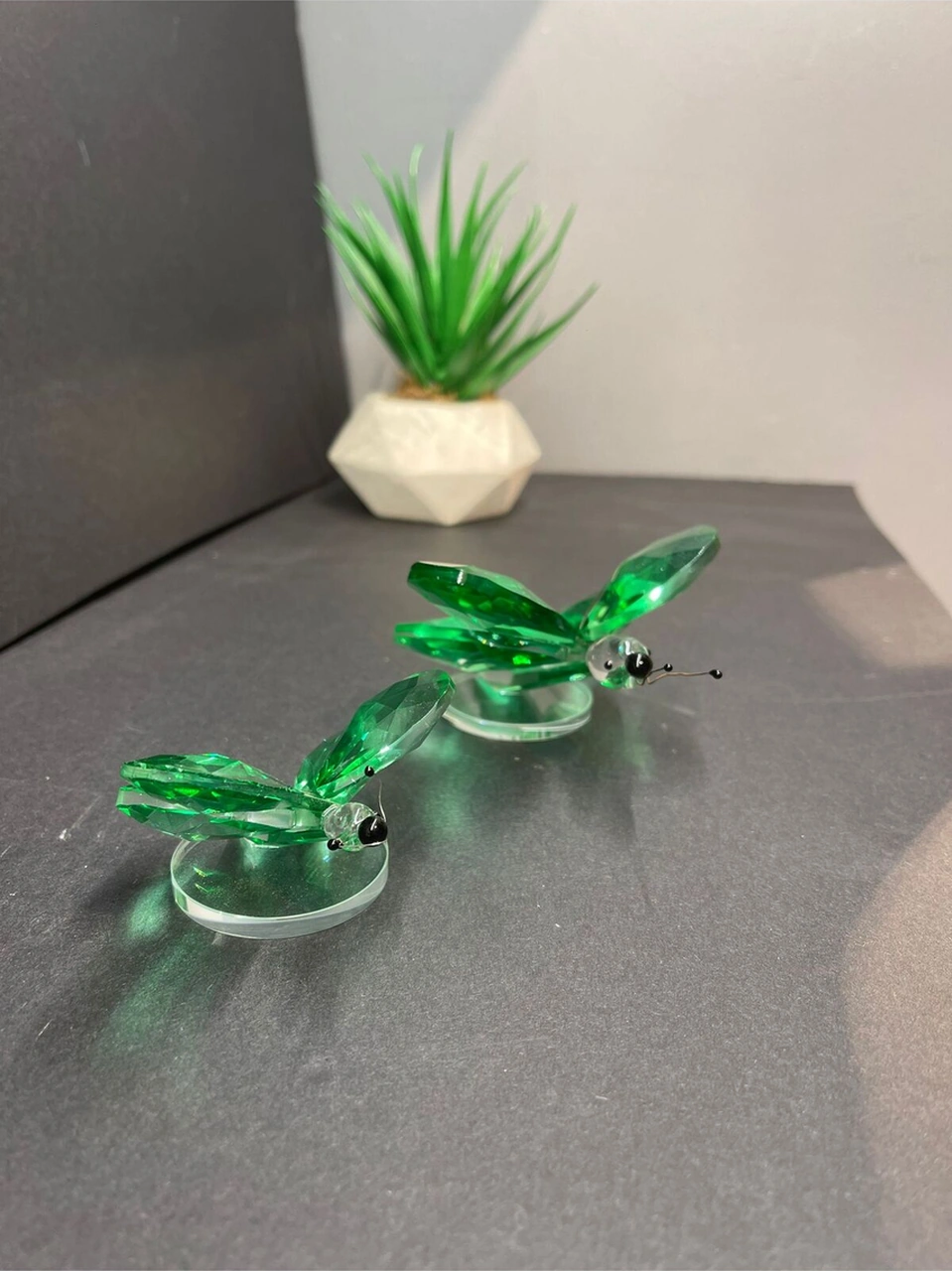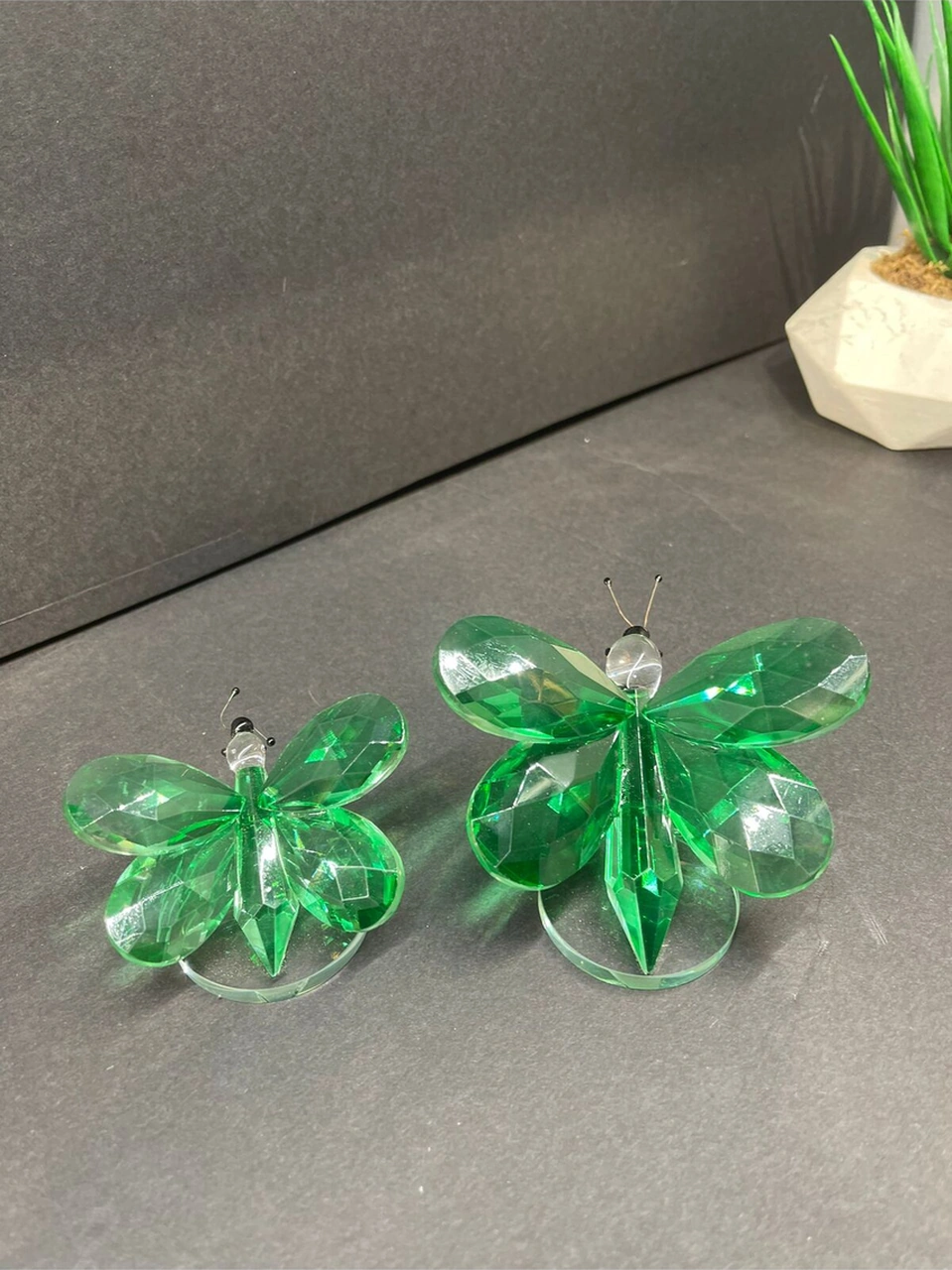 Dekoratif Kristal Cam Ikili Kelebek Biblo Yeşil .