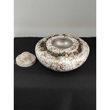 Dekoratif Masa Üstü Yuvarlak Ateş Çukuru Taş Şömine-500 Ml Yakıt Hediyeli - Altın Mermer