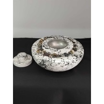 Dekoratif Masa Üstü Yuvarlak Ateş Çukuru Taş Şömine-500 Ml Yakıt Hediyeli - Siyah Mermer