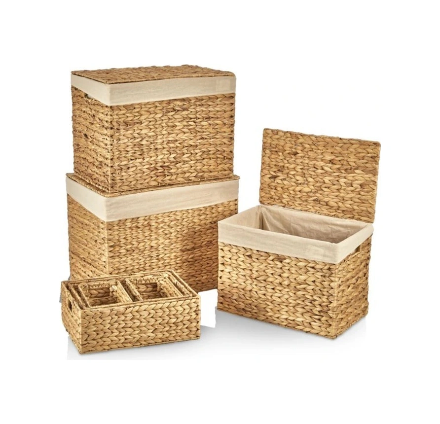 Dekoratif Naturel Yatay Dikdörtgen Düzenleyici Hasır Sepet 7 Li Kahve