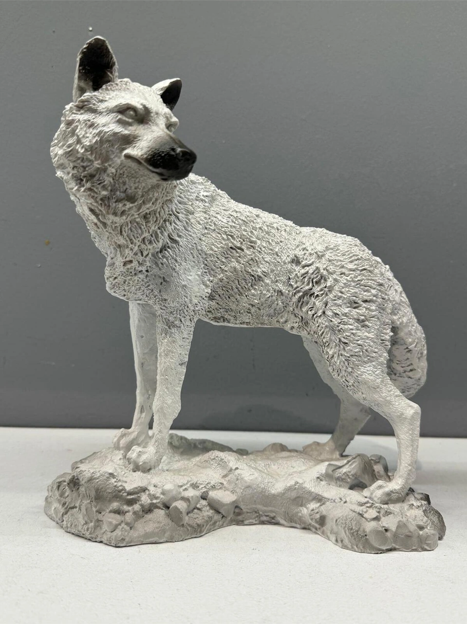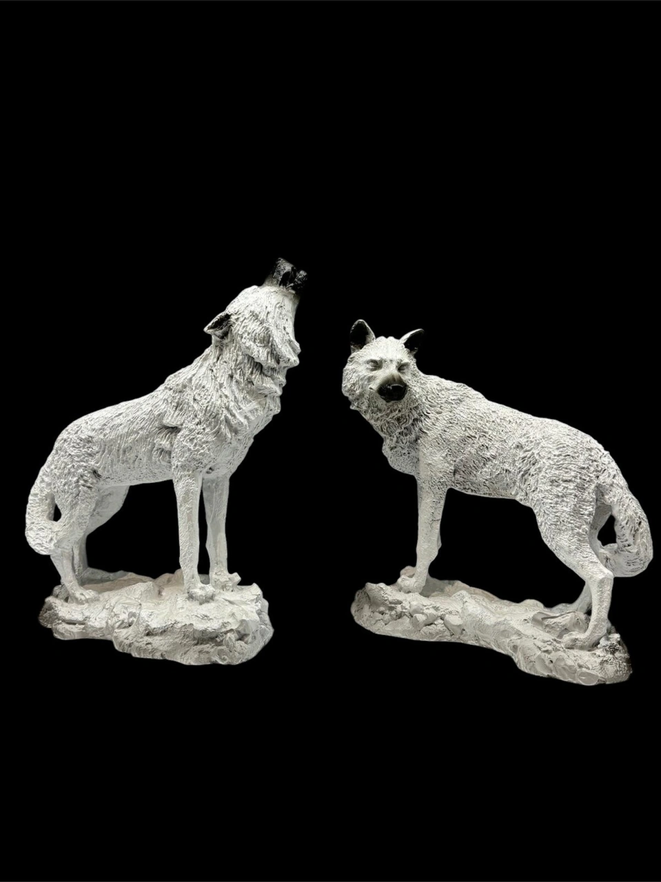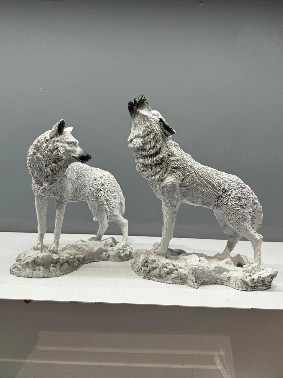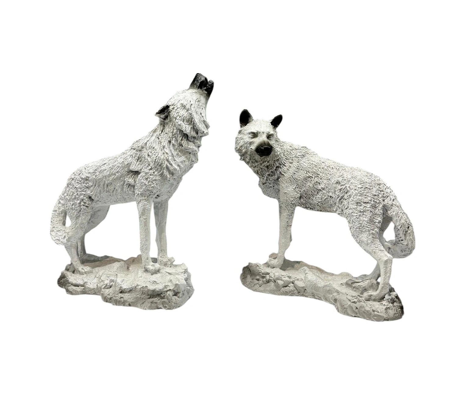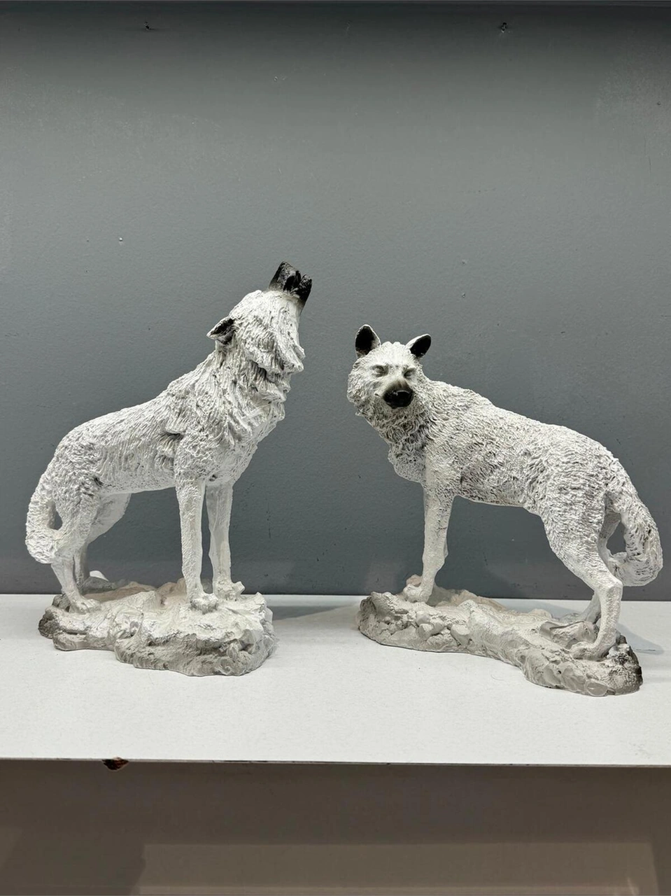Dekoratif Polyester İkili Kurt Biblo Beyaz Eskitme