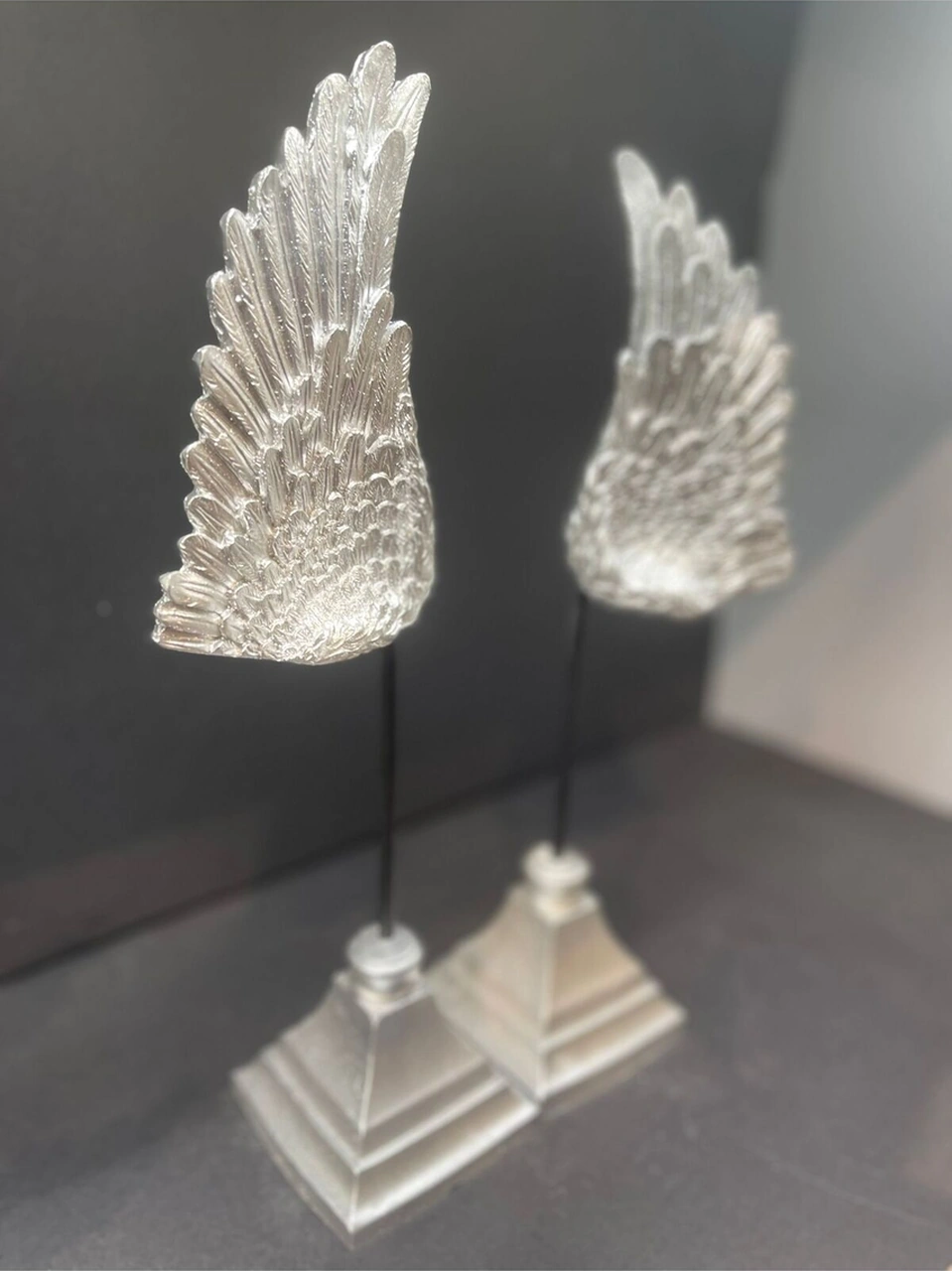 Dekoratif Polyester Ikili Melek Kanatları Biblo Gümüş