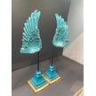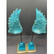Dekoratif Polyester Ikili Melek Kanatları Biblo Turkuaz Gold Eskitme