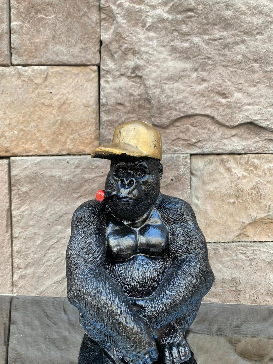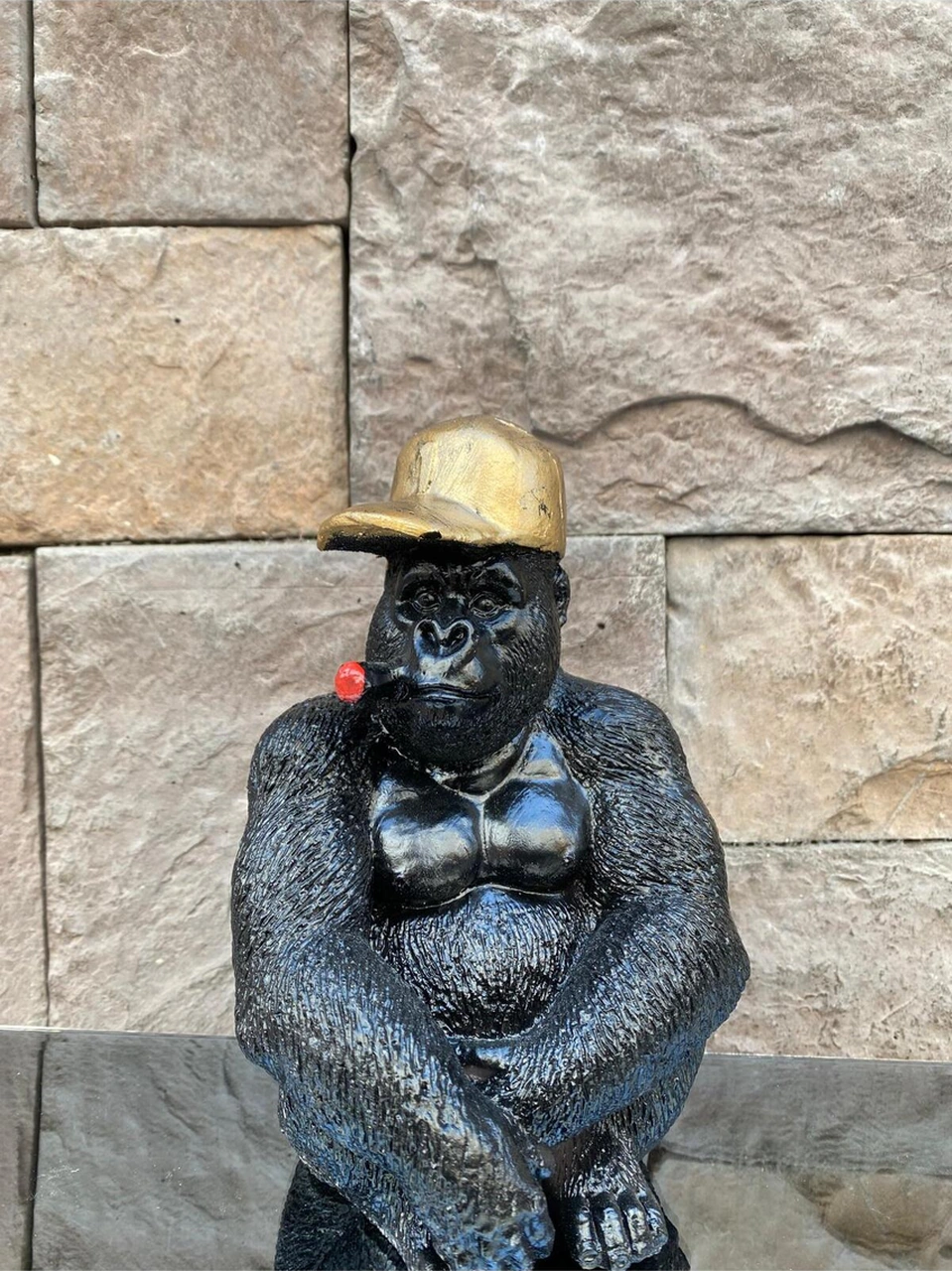 Dekoratif Polyester Tekli Oturan Goril Hediyelik Biblo Siyah Gold