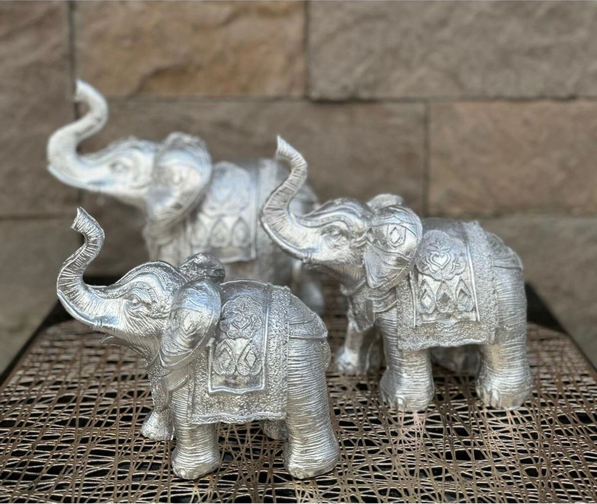 Dekoratif Polyester Üçlü Fil Biblo Gümüş .