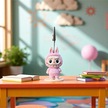 Dekoratif Sevimli Labubu Notluk - Kağıt Tutacağı - Fotoğraf Tutacak Bebek Pembe