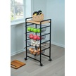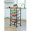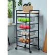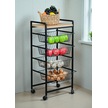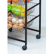 Dekoratif Tekerlekli Metal Sebzelik 4 Tel Sepetli Çam Ahşap Raflı Çok Amaçlı Stand Siyah