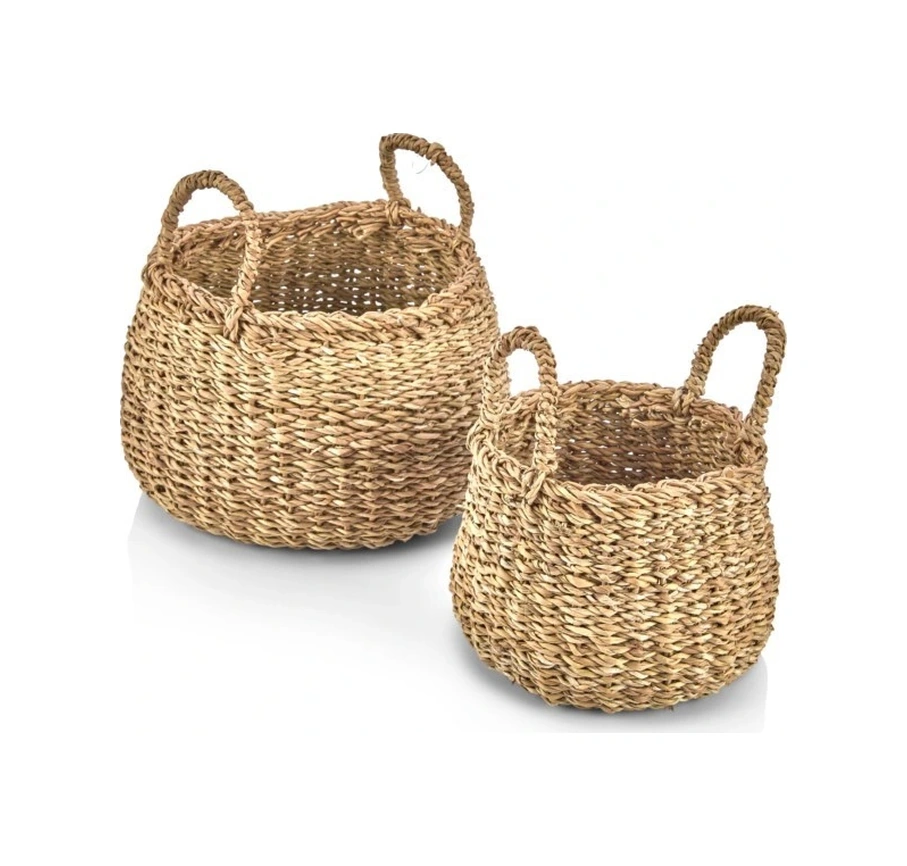 Dekoratif Yuvarlak Bombeli Saksılık Hasır Sepet 2 Adet