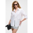 DELFINO Kadın Oversize %100 Organik Pamuk Uzun Kollu İnce Uzun Beyaz Gömlek