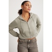 Delıa Kadın Crop 3 Iplik Şardonlu Örme Relaxed Fit Fermuarlı Kapüşonlu Çağla Yeşili Sweatshirt