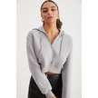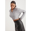 Delıa Kadın Crop 3 Iplik Şardonlu Örme Relaxed Fit Fermuarlı Kapüşonlu Gri Sweatshirt