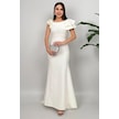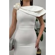 Delvira Drapeli Tek Omuz Çiçek Detaylı Uzun Beyaz Abiye Elbise Beyaz