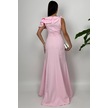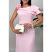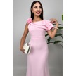 Delvira Drapeli Tek Omuz Çiçek Detaylı Uzun Pembe Abiye Elbise Pembe