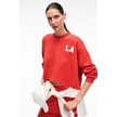 DELYRA Kadın Bisiklet Yaka Rahat Kesim Nakış Detaylı Kırmızı Sweatshirt