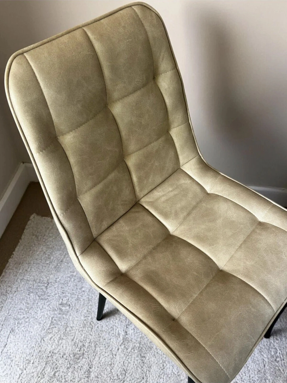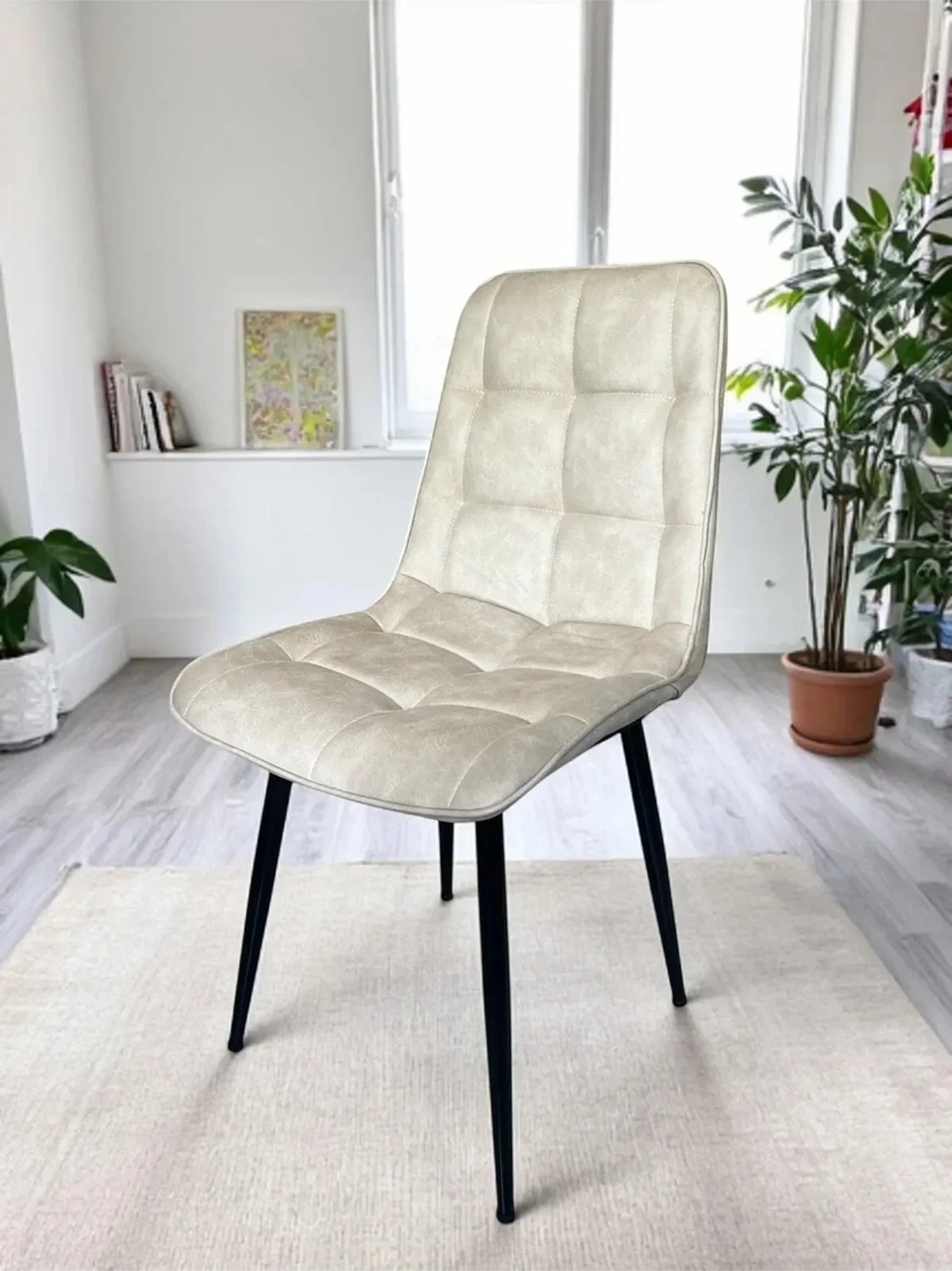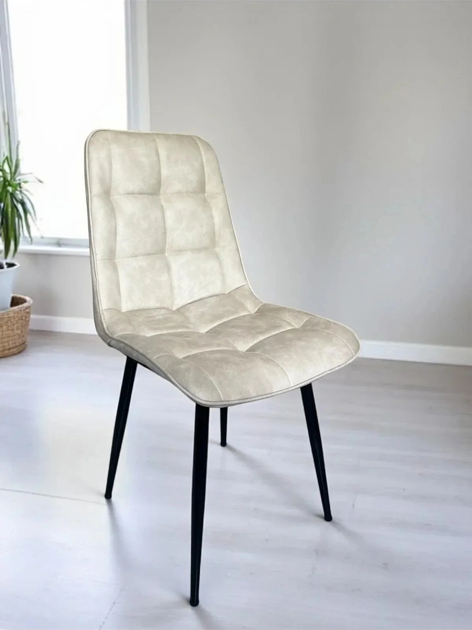 Dengema Bahar Sandalye 2 Adet Modern Yemek & Mutfak Sandalyesi, Bej Kumaş - Metal Siyah Ayak Bej