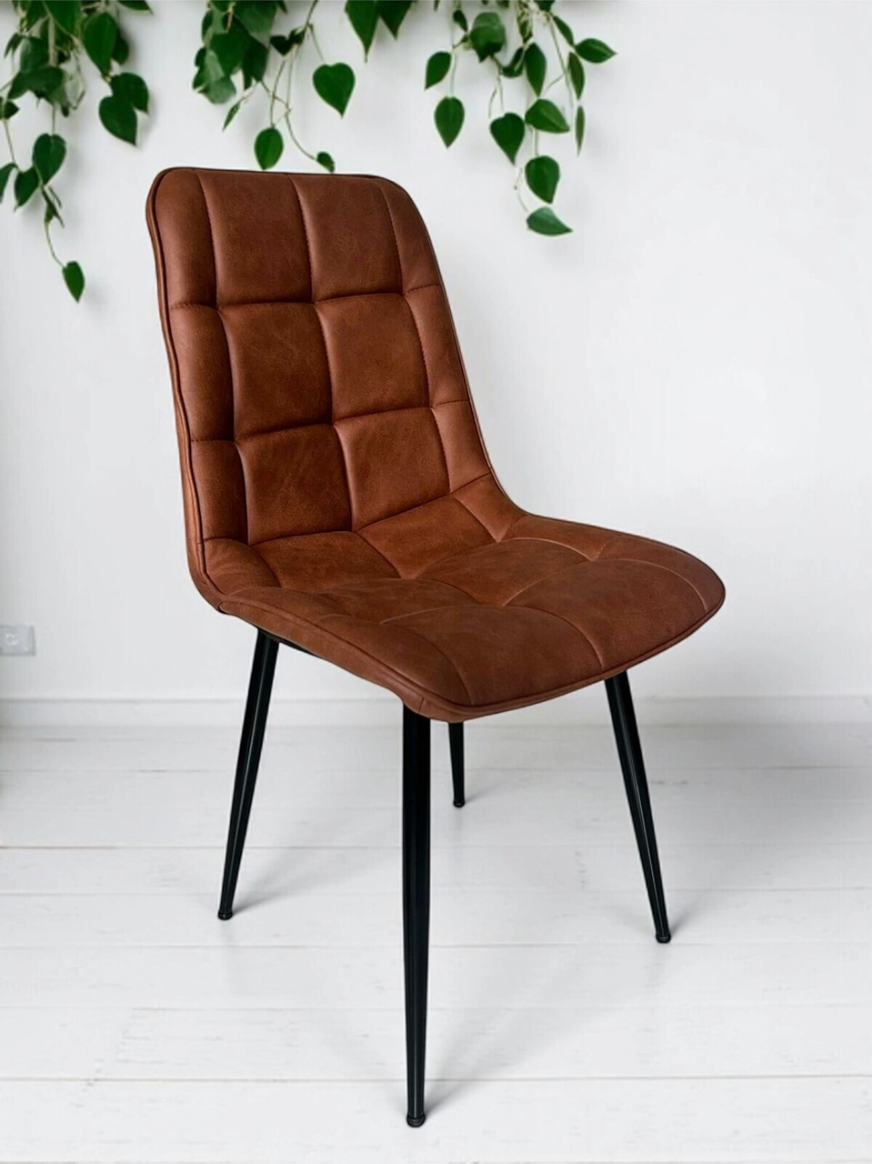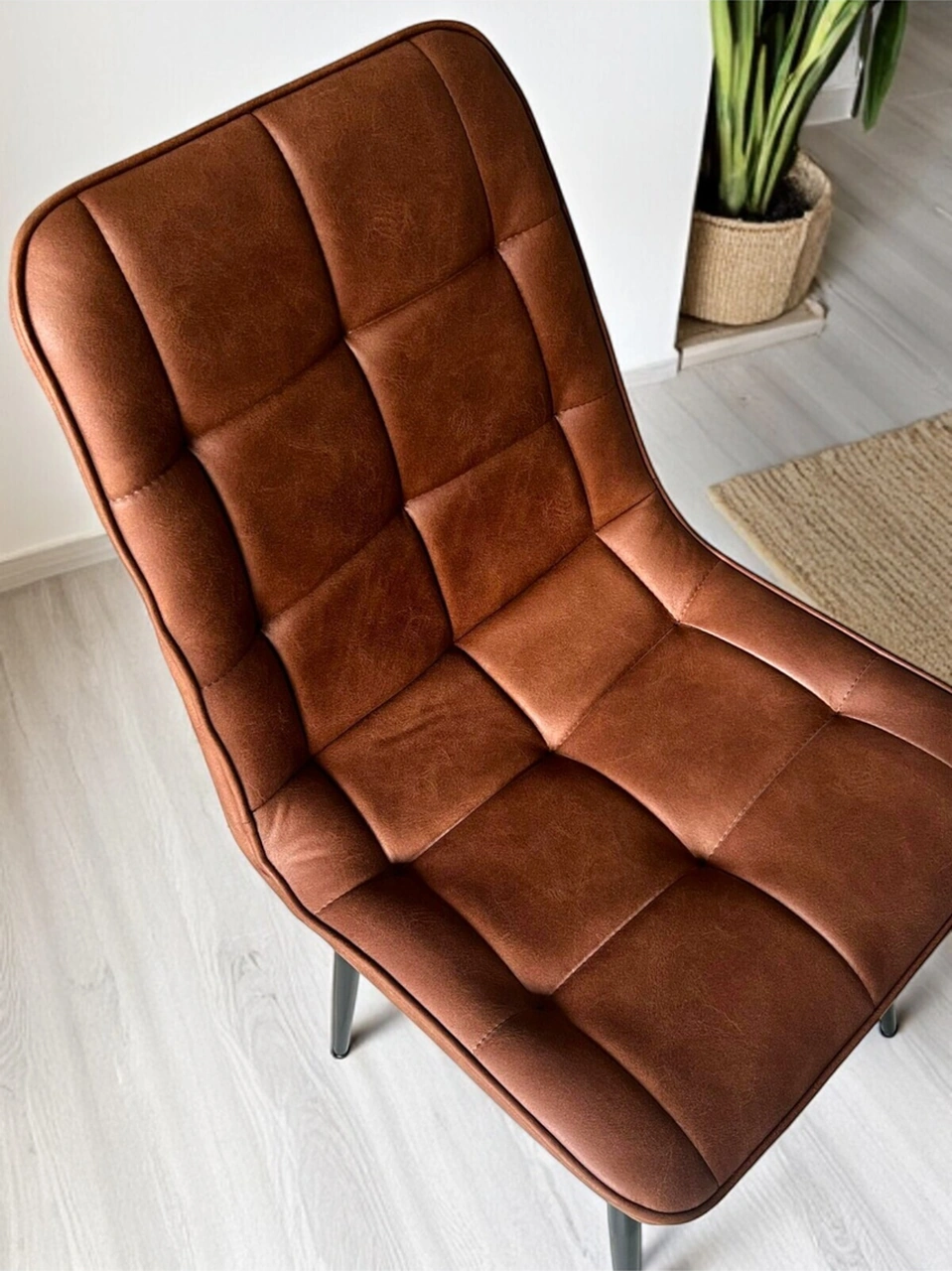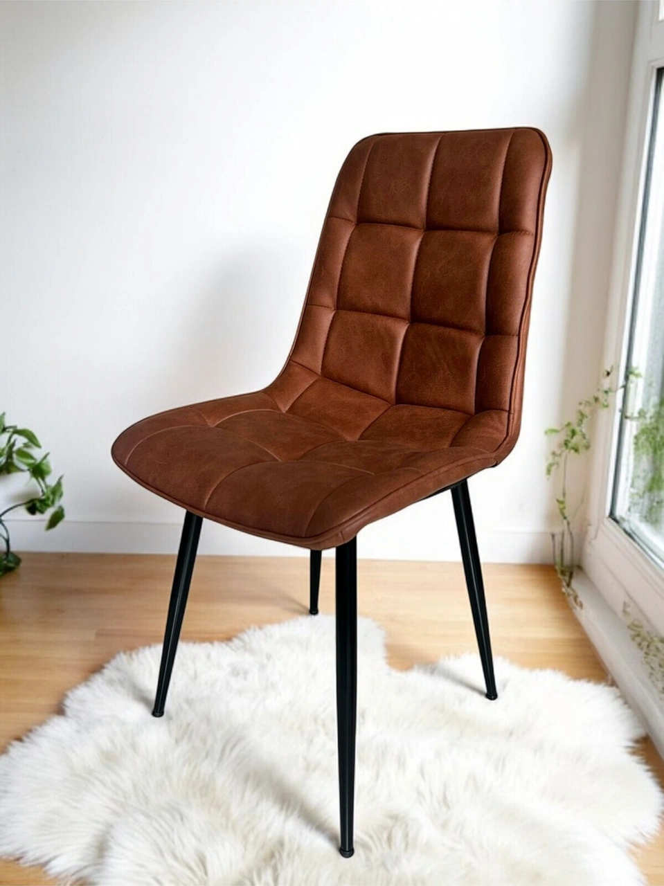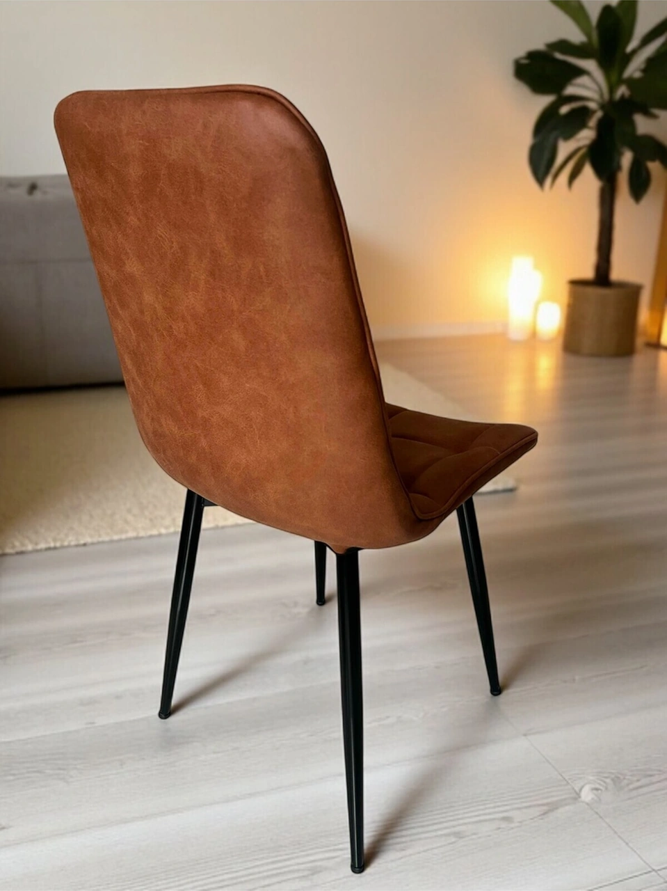 Dengema Bahar Sandalye 2 Adet Modern Yemek & Mutfak Sandalyesi, Kahverengi Kumaş - Metal Siyah Ayak Kahverengi