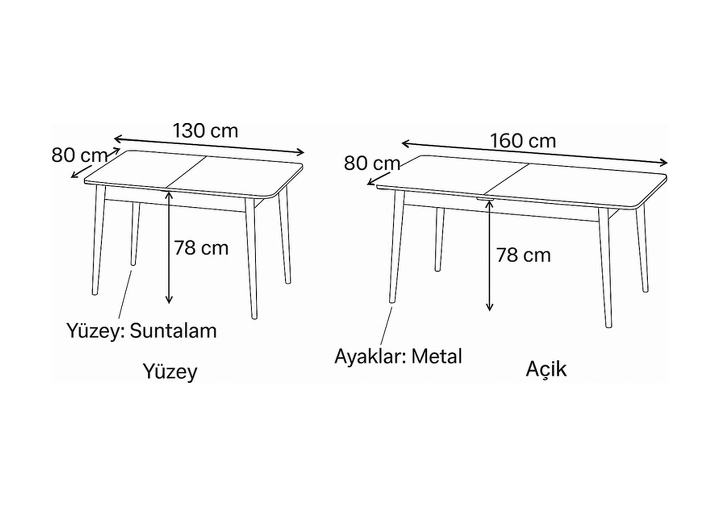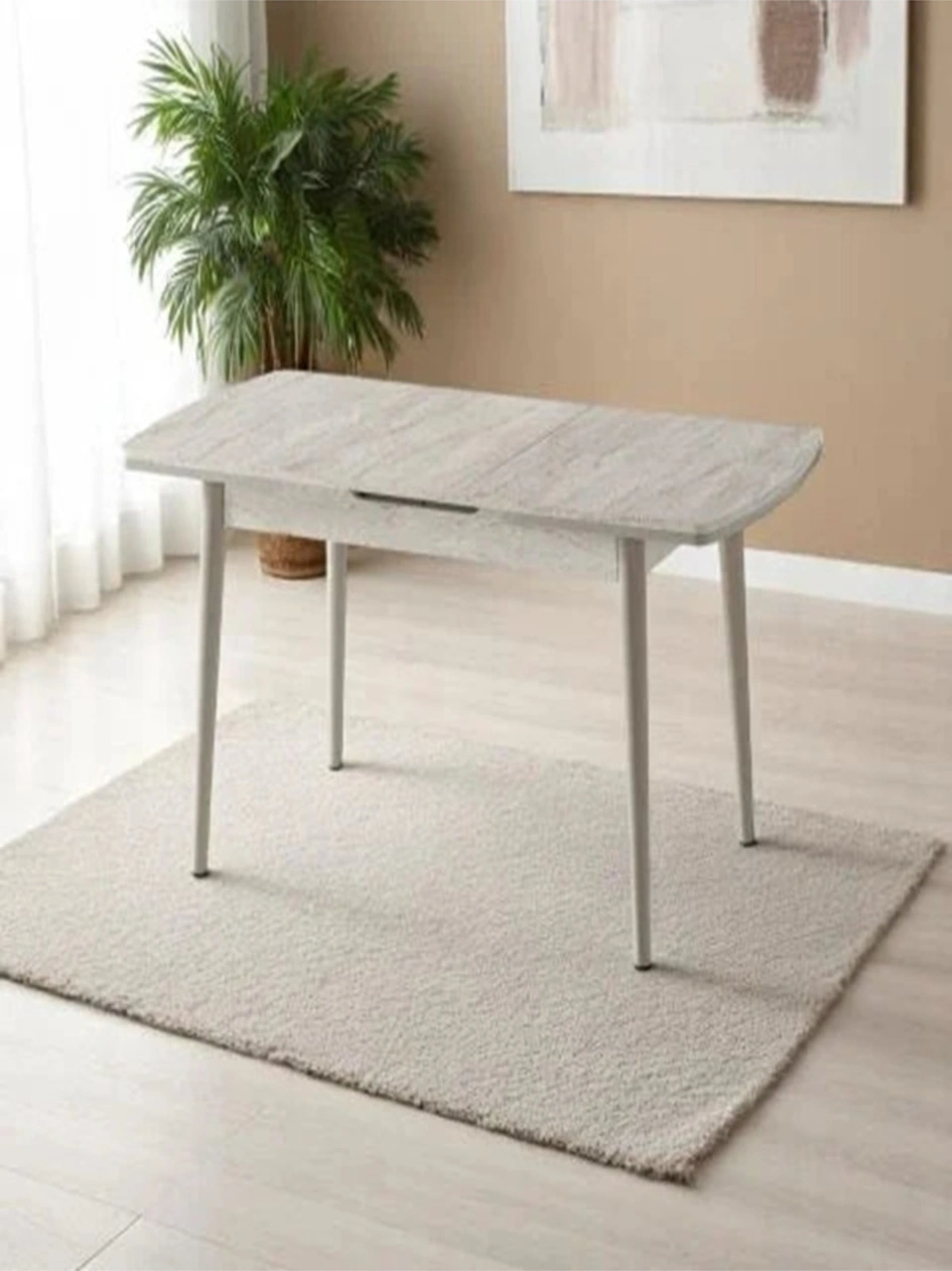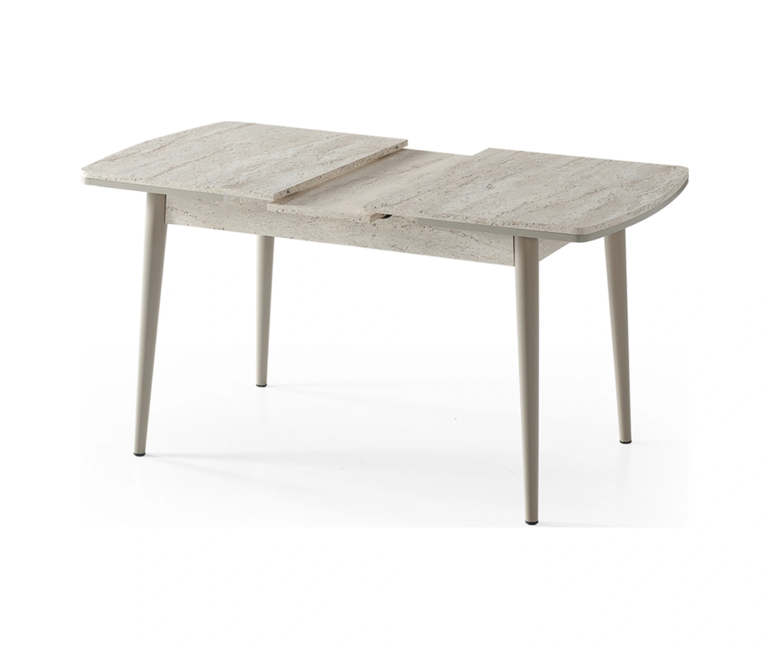 Dengema Berlin Açılır Dikdörtgen Masa Traverten, Kapuçino Ayak, 80 130 160 Cm Sandalyesiz, 4 6 Kişilik Traverten Desen - Kapuçino Ayak
