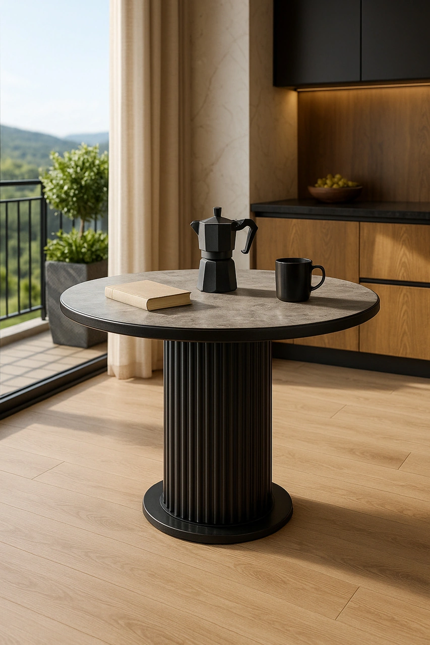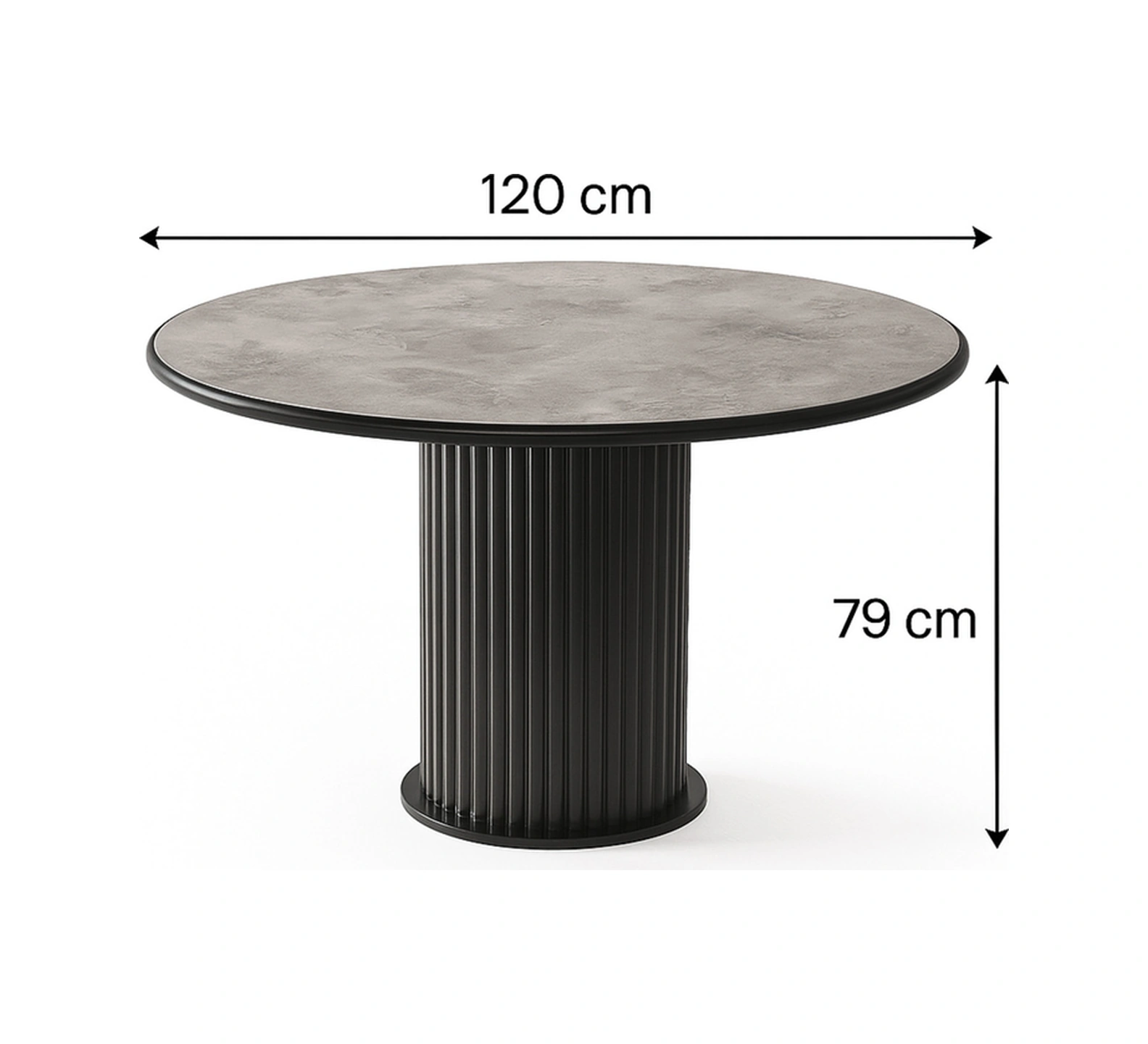 Dengema İstanbul 81 Yuvarlak Masa Gri Mermer Desen, Siyah Ayak Ø120 Cm Gri Mermer - Siyah Ayak