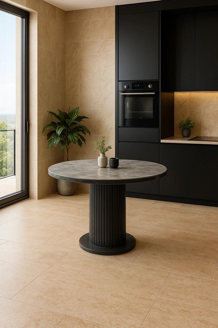 Lucca Yuvarlak Traverten Masa, Konik 120x120 Traverten