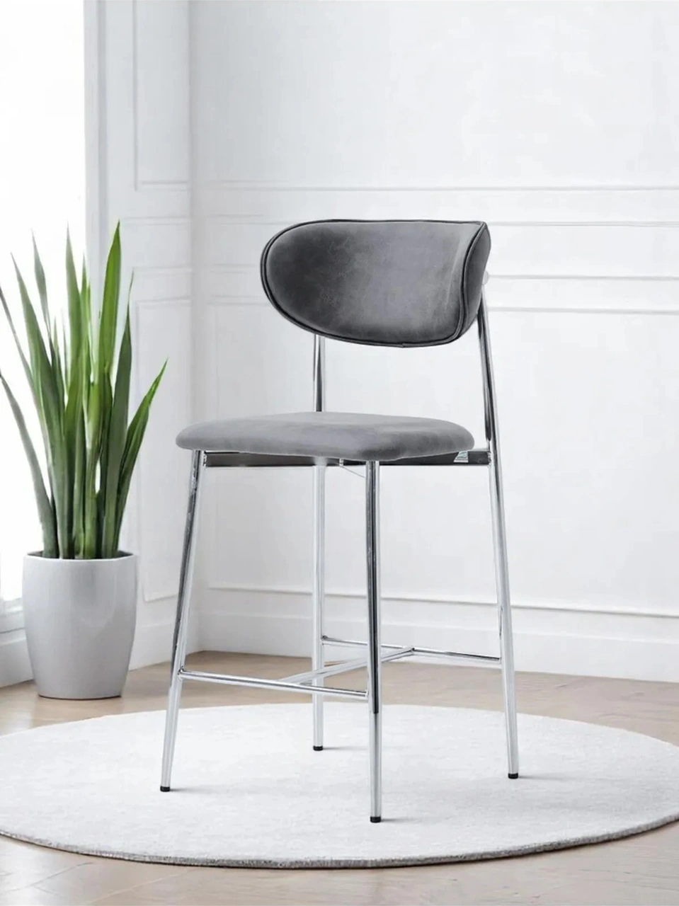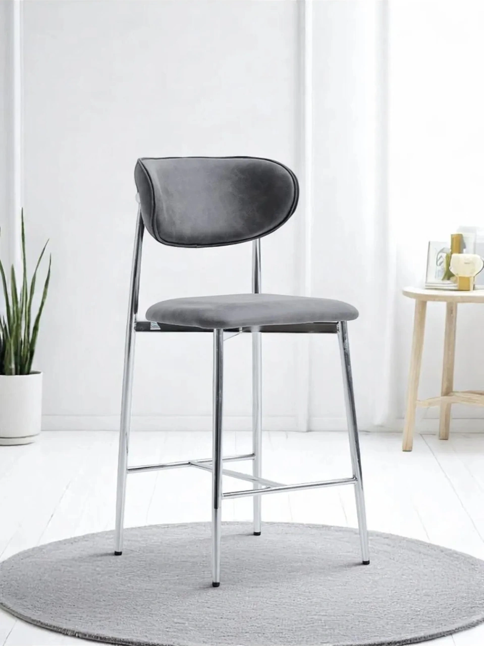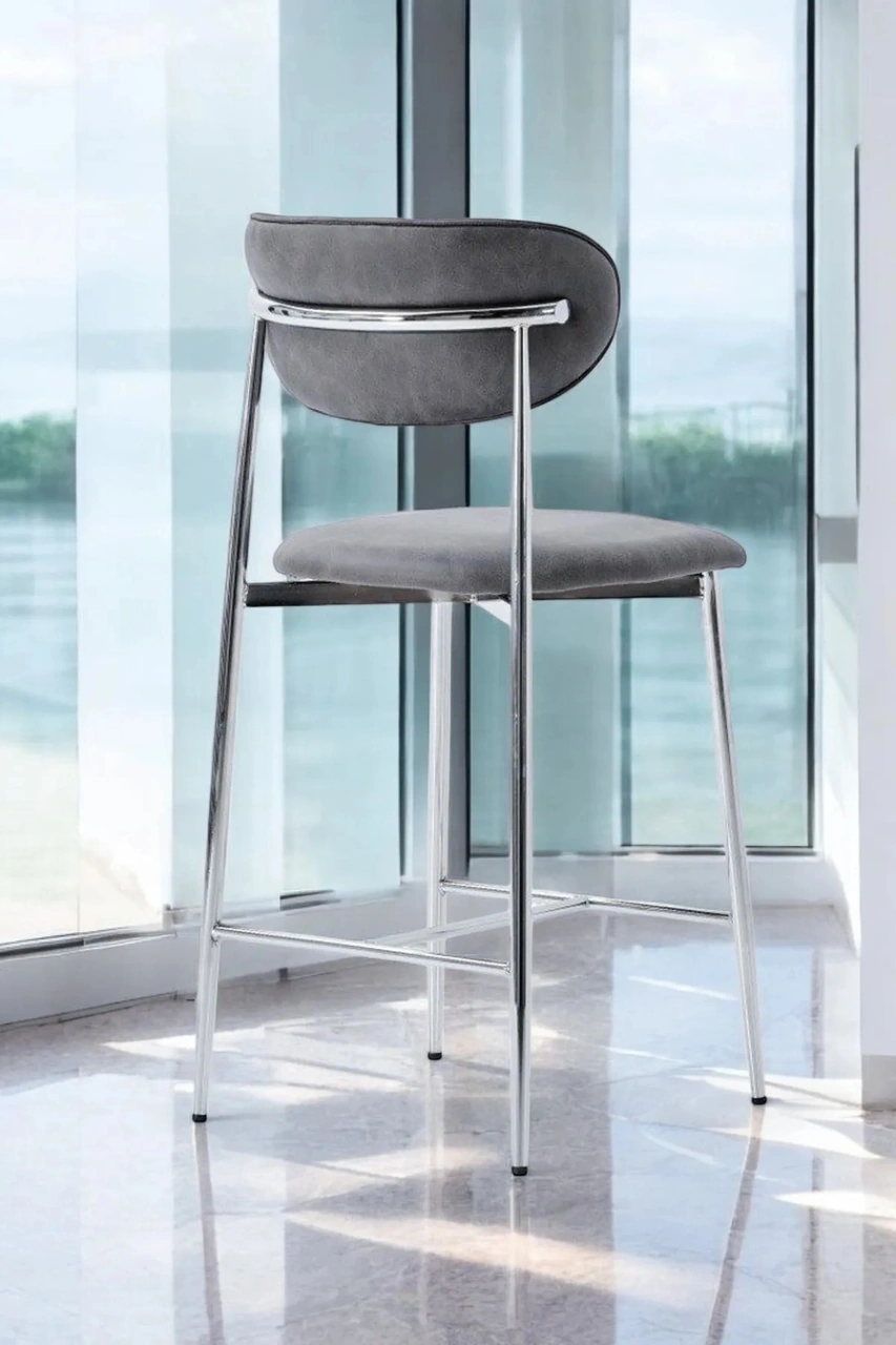 Dengema Laila 1 Adet 65 Cm Ada Mutfak Bar Sandalyesi Gri Renkli Kumaş Krom Metal Ayak Gri - Krom