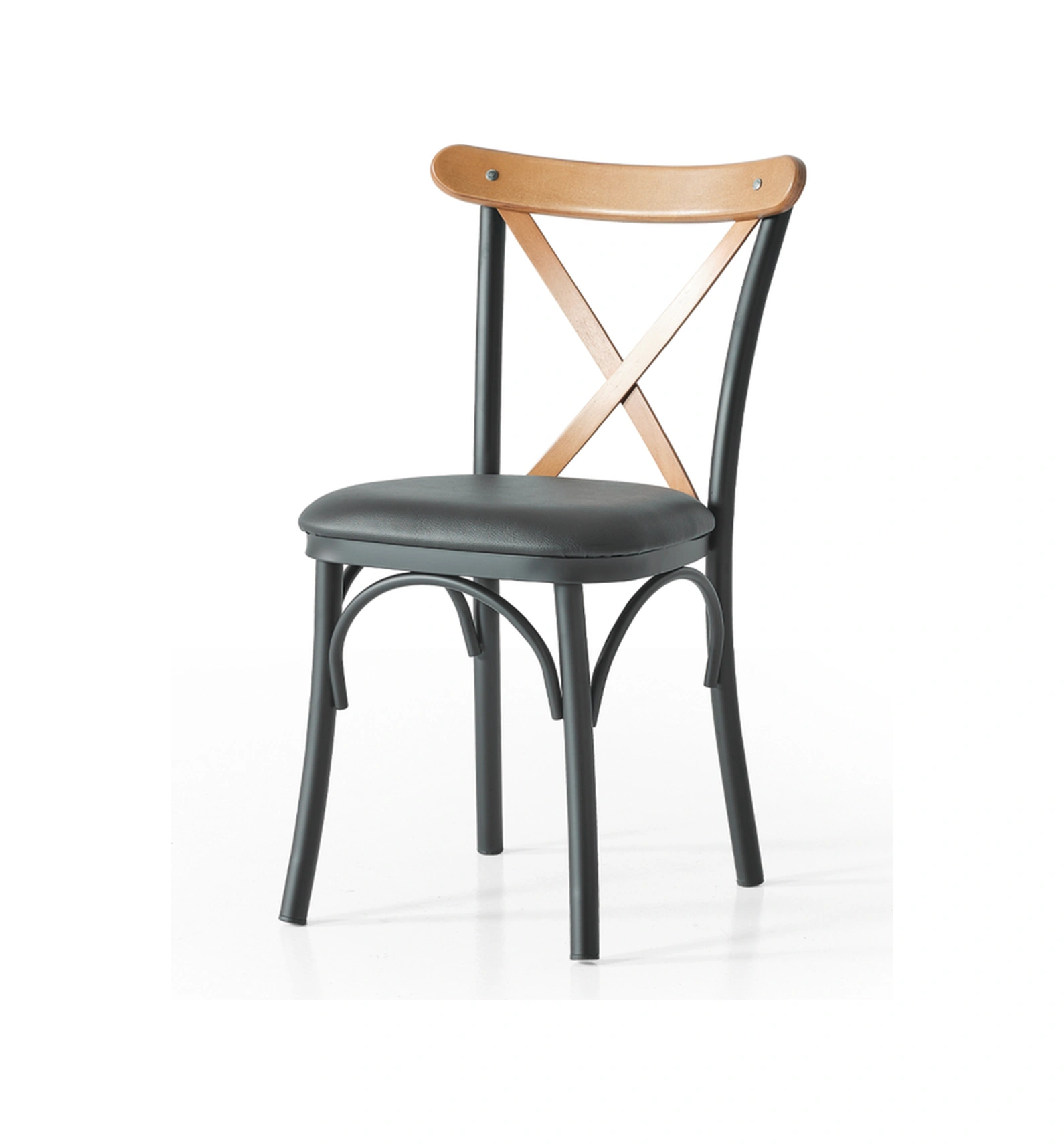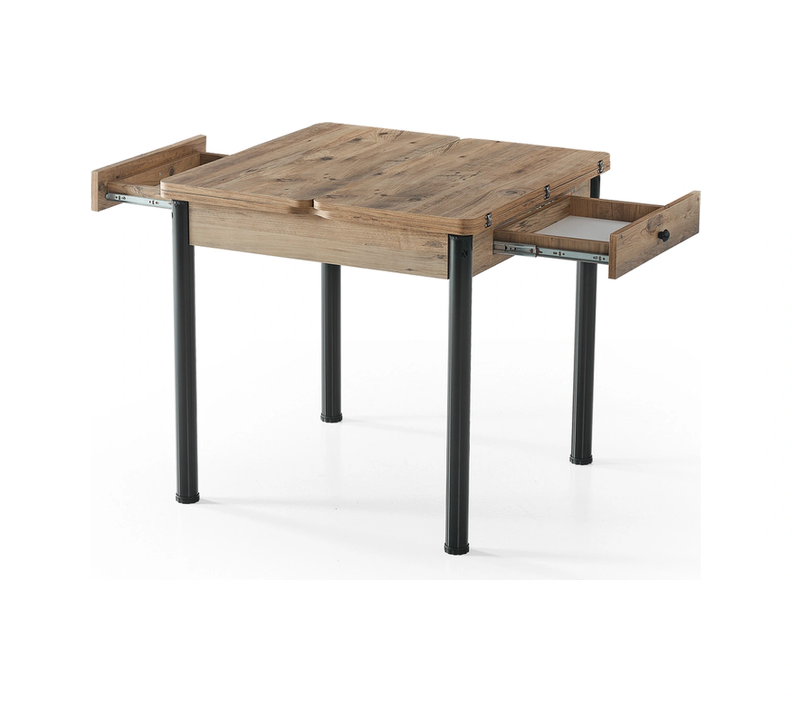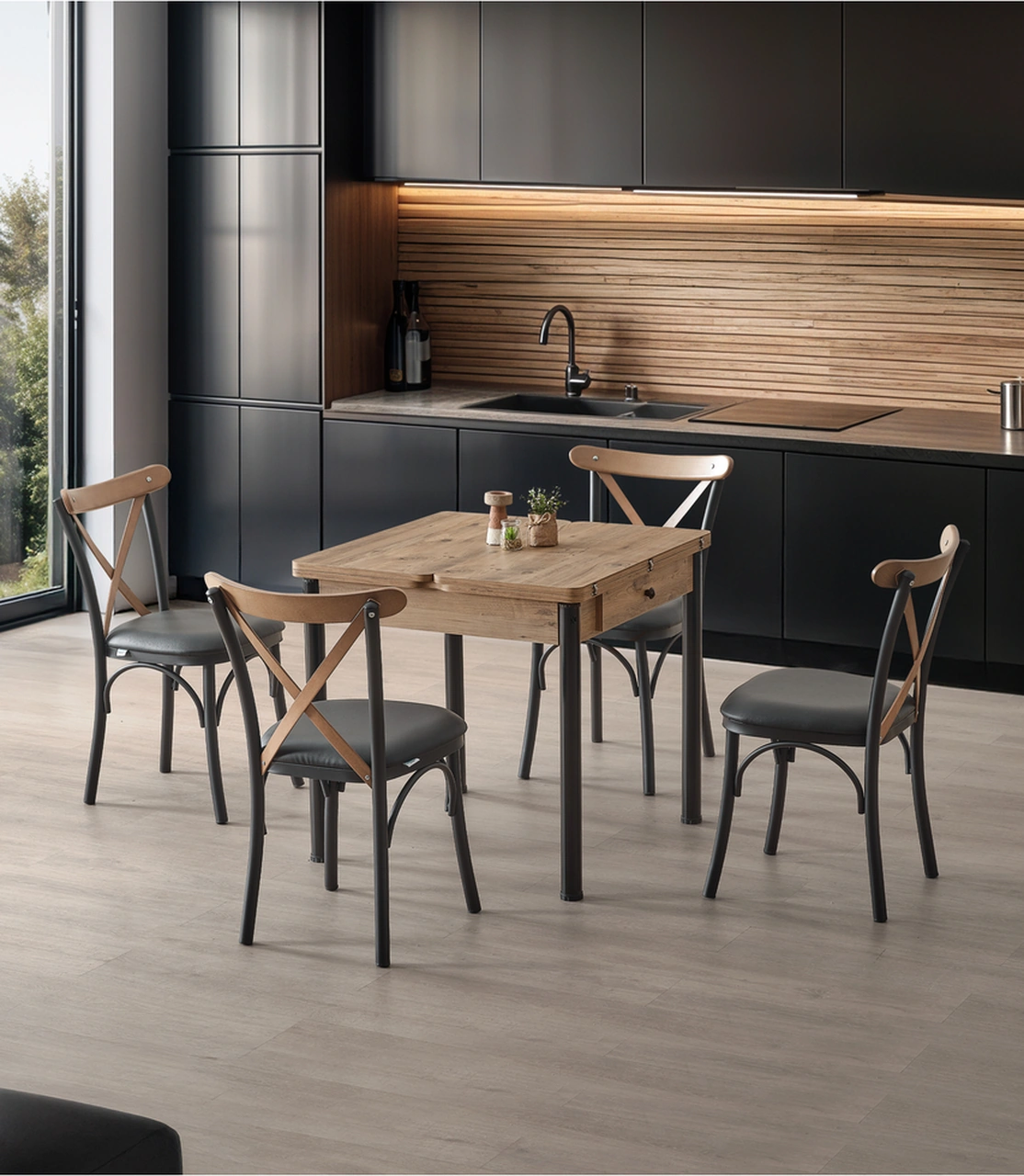 Dengema Neva 20 Masa Takımı Açılır Kapanır Masa, 4 Sandalyeli, Atlantik/siyah, Ceviz Ahşap Detaylı Ceviz
